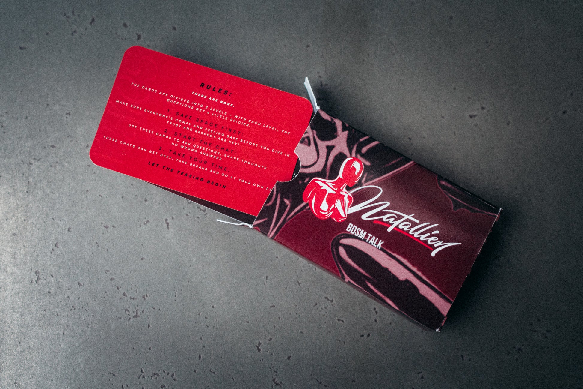 The deck includes questions about relationships, BDSM practices, and secret fantasies that may have never been spoken out loud before. There are no strict rules – the best way to play is to take turns drawing a card and answering the question.
